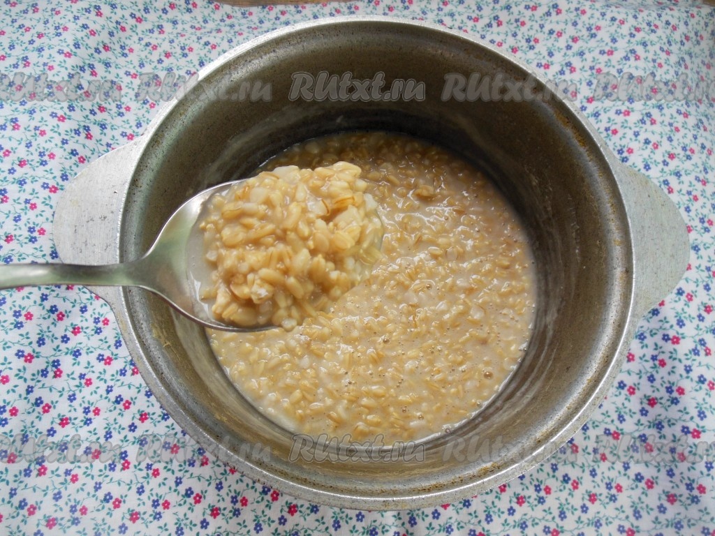 Варите кашу из овсяной крупы 40-60 минут, постоянно помешивая и не накрывая крышкой.