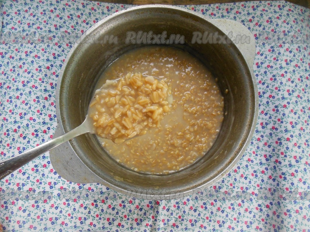 Овсяную крупу промойте несколько раз в холодной воде. Залейте водой, оставьте на 2 часа, затем снова слейте воду.