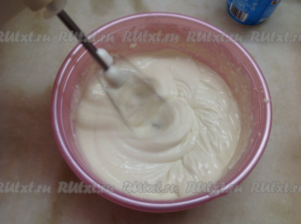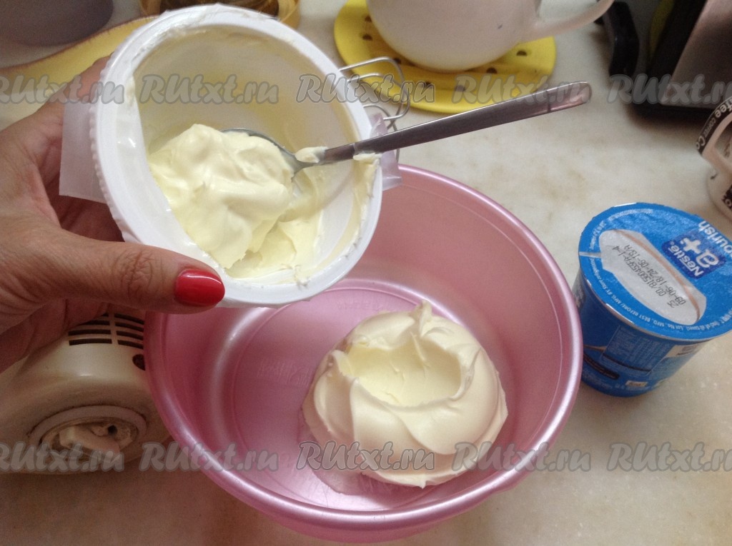 Сверху выложить половину взбитого сыра Маскарпоне.