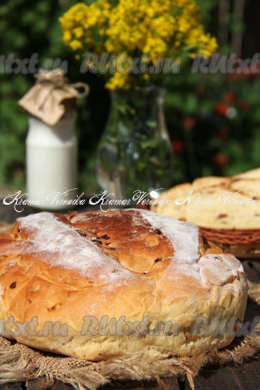 Вот такой золотистый батон с изюмом у нас получился.