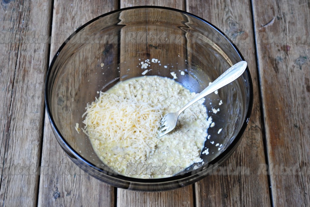 30 грамм сыра натереть на тёрке и добавить в тесто, перемешать.