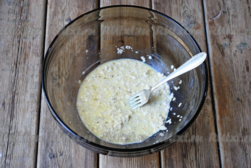 Перемешать получившуюся массу и оставить на 5 минут, чтобы хлопья набухли.