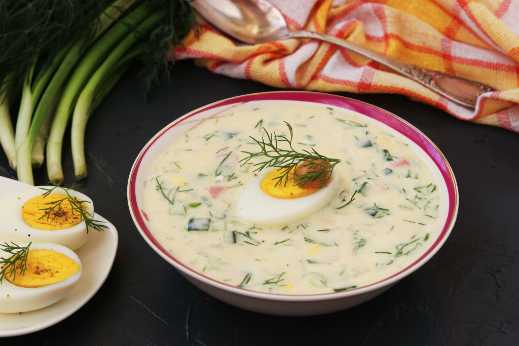Окрошку рекомендуется хотя бы на 30 минут убрать в холодильник, чтобы все ингредиенты сдружились и окрошка приобрела нужный вкус. Разливаем готовую вкусную, освежающую окрошку на кефире с горчицей в тарелки и подаём к столу.