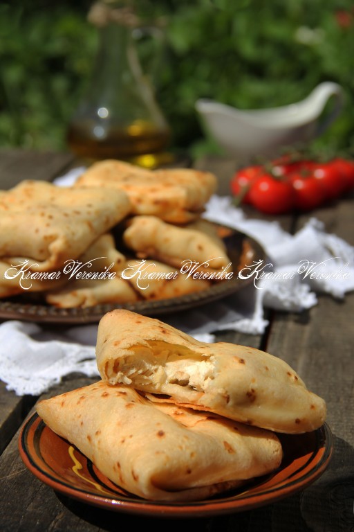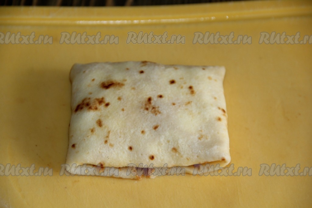 Завернуть начинку в блин удобным для вас способом (я сделала конвертики).