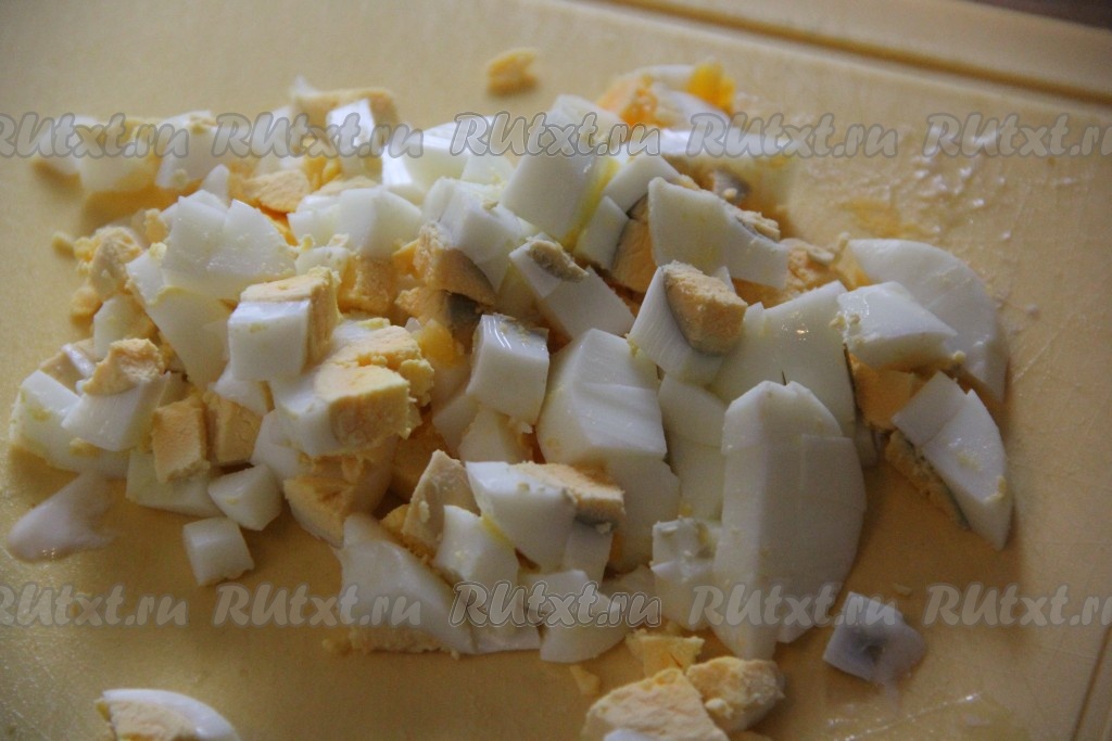 Яйца очистить и мелко нарезать.