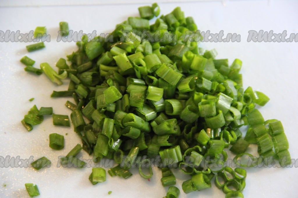 Зелёный лук вымыть и нарезать.
