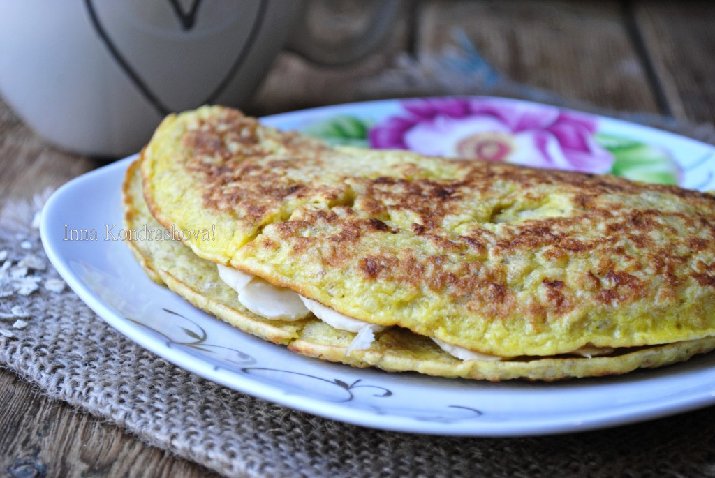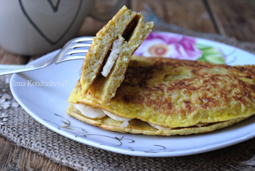 Очень вкусный и сытный овсяноблин с бананом готов. Можно подавать на стол.