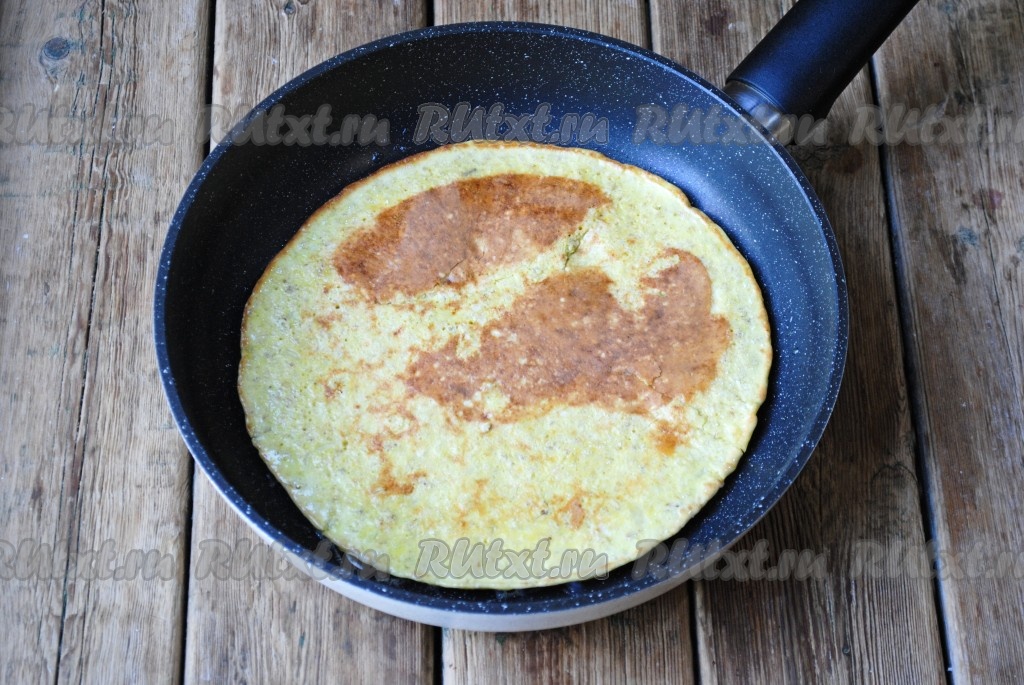 Разогреть сковороду с растительным маслом и вылить тесто, разровнять.