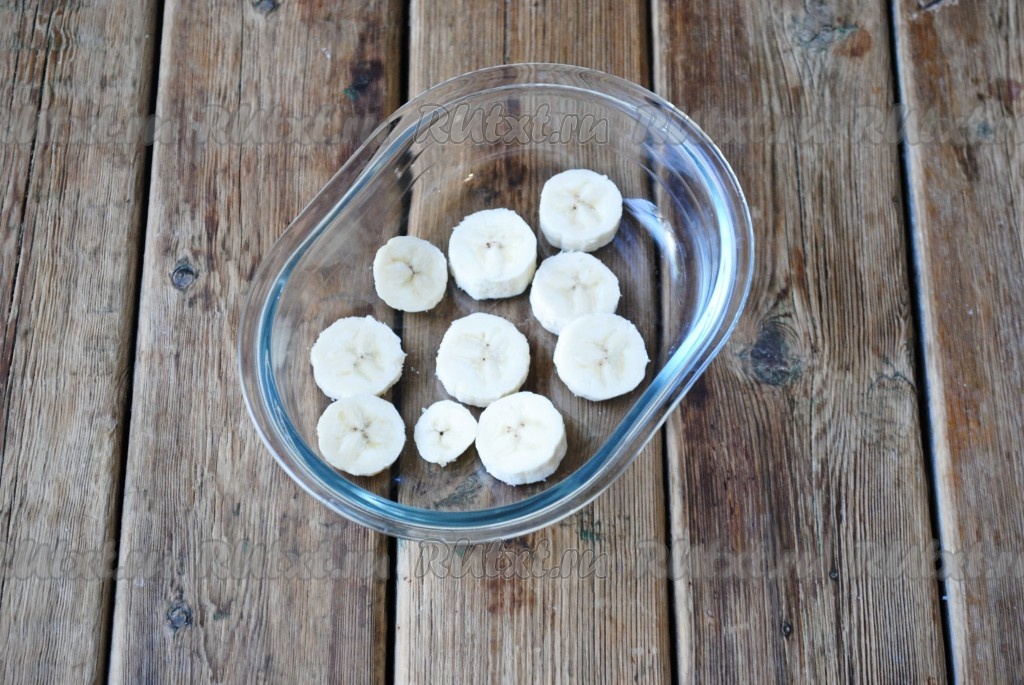 С помощью вилки размять нарезанный банан.