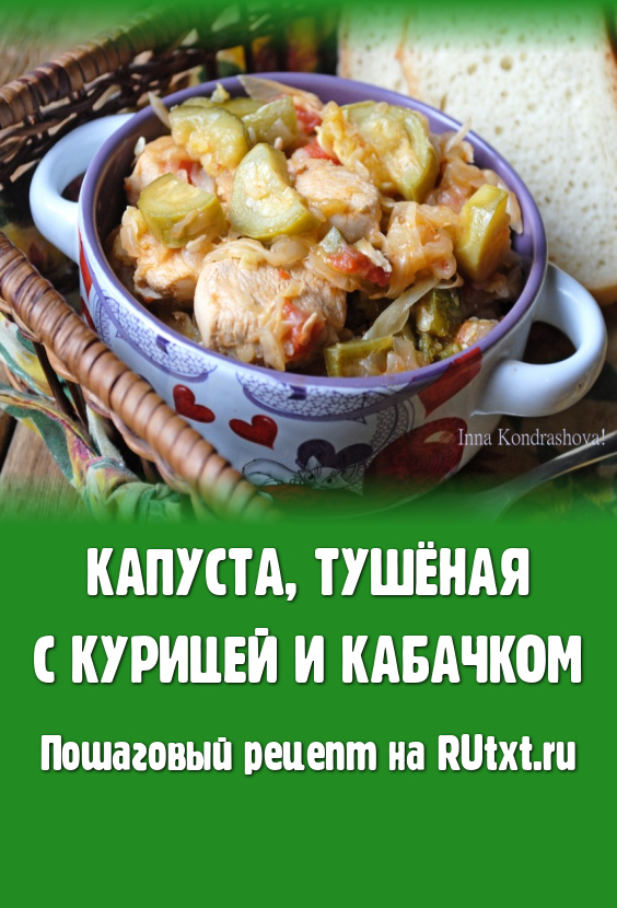 Затем убрать с огня, дать настояться минут 10 и можно подавать сочное, аппетитное и сытное блюдо к столу. Капуста, тушёная с курицей и кабачком, приятно разнообразит повседневное меню и станет полноценным обедом или ужином для всей семьи.