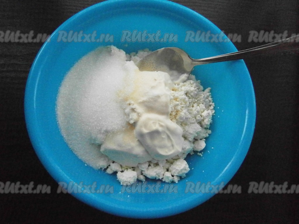 Сверху выложить творожную массу и аккуратно разровнять, полностью покрывая всю малину.