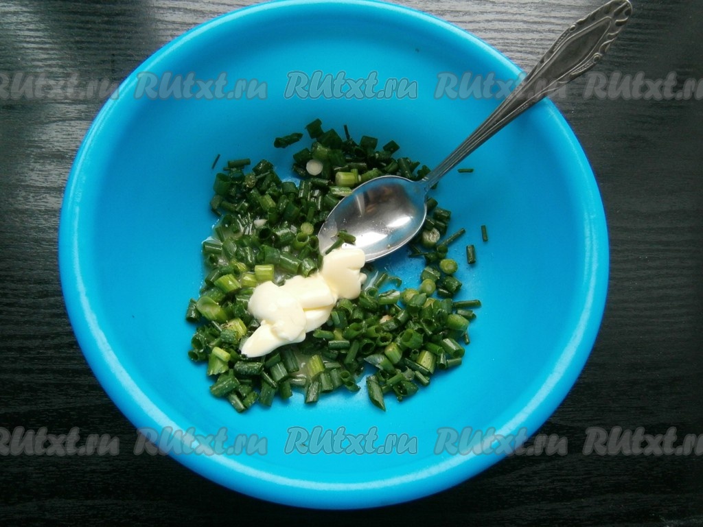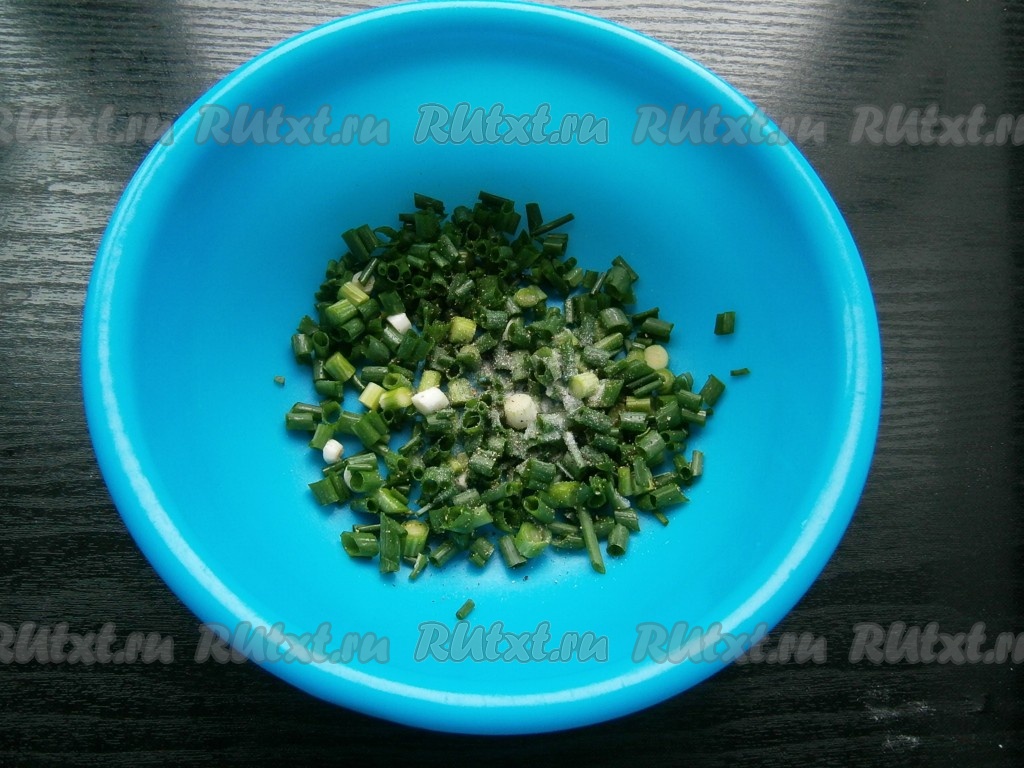 Приготовить начинку: измельчить зеленый лук, добавить соль и немного черного перца.