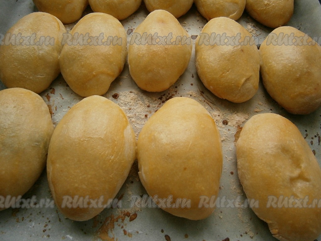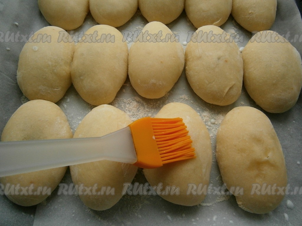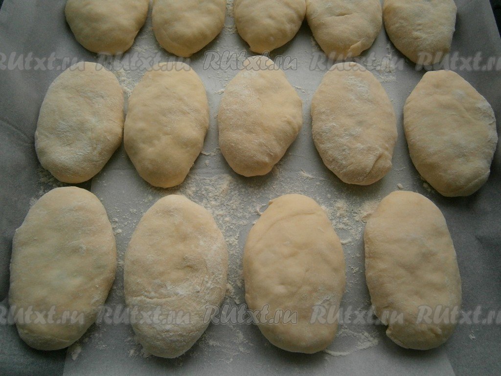 Противень застелить пергаментом и чуть присыпать мукой. Выкладывать пирожки швом вниз.
