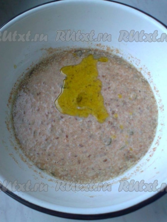 Затем надо включить духовку и разогреть ее до 170 градусов. За то время, пока духовка нагреется (а это около 15 минут), клейковина в муке набухнет и хлебцы в результате не будут ломкими. Затем надо добавить в смесь оливковое масло, перемешать.