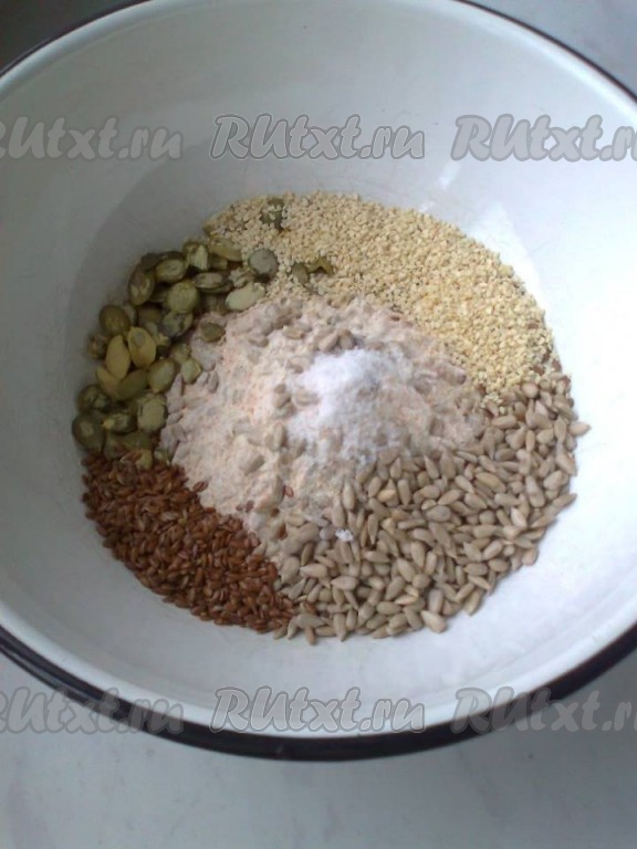 Мультизерновые хлебцы получаются очень хрустящими и вкусными, при этом еще и очень полезными. Ими можно просто похрустеть, а можно подать их с джемом и сыром. Такие хлебцы понравятся не только взрослым, но и детям. Рецепт нашла в Интернете. Возможны различные вариации муки и семян. Я готовила с пшеничной цельнозерновой мукой и цельнозерновой спельтовой мукой, а также наполовину с молотыми хлопьями геркулеса. Каждый вариант по-своему хорош.