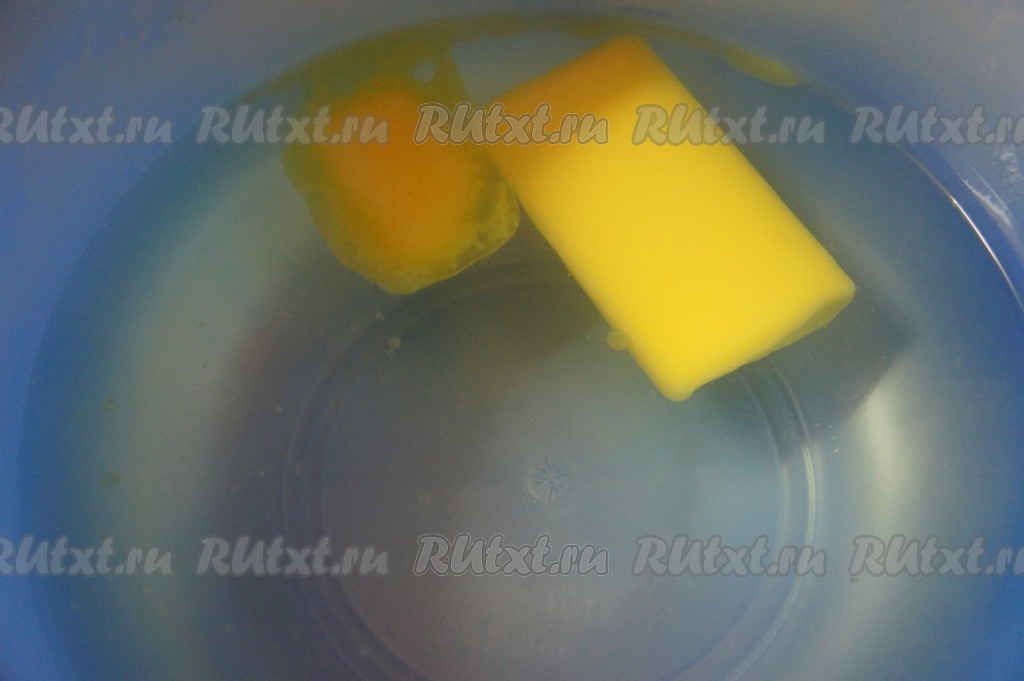 В миску налить горячую кипячёную воду, добавить сливочное масло, перемешать.