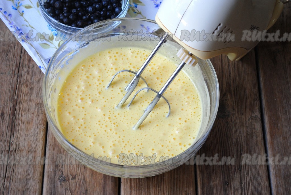 Взбить яйца на максимальных оборотах миксера до однородности (ориентировочно в течение 1 минуты).