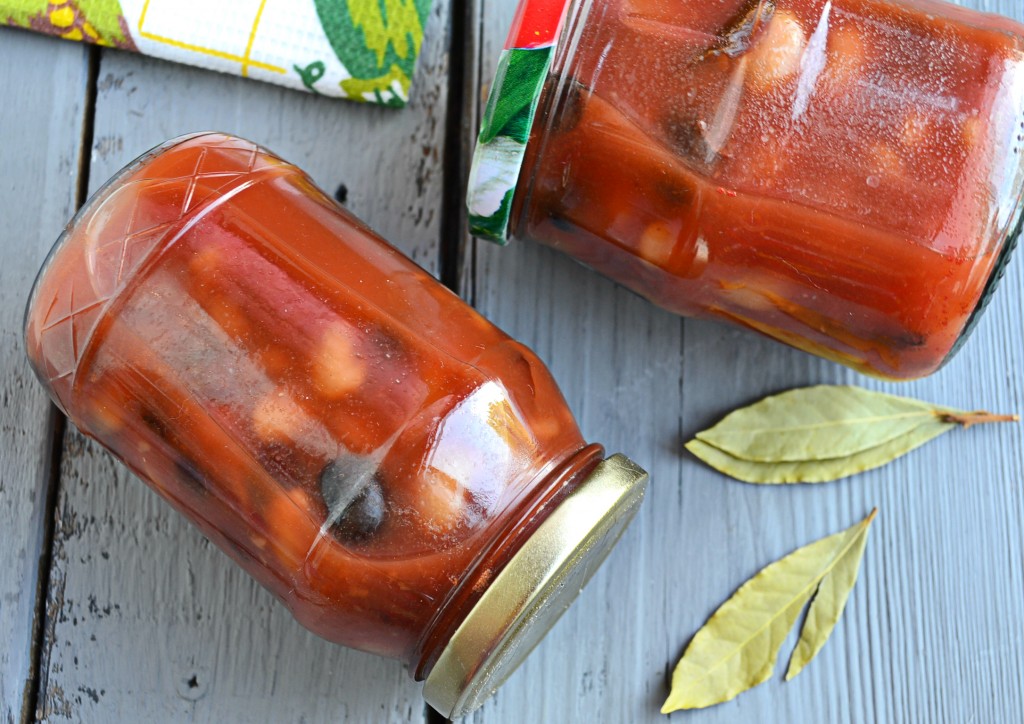Закатать банки с вкусной фасолью, приготовленной в томате на зиму, прокипяченными крышками, перевернуть и укутать до полного остывания. Хранить заготовку нужно в прохладном месте.