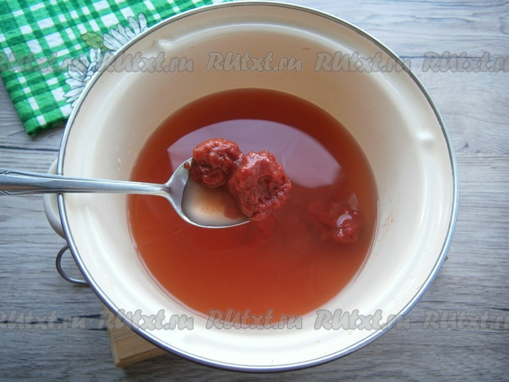 В кастрюлю выложить томатную пасту, залить 500 мл воды и тщательно перемешать.