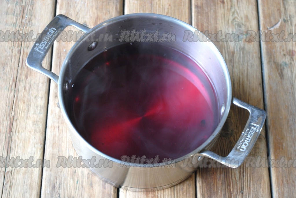 Окрашенную воду снова вскипятить и залить содержимое банки под завязку, то есть до самого верха.