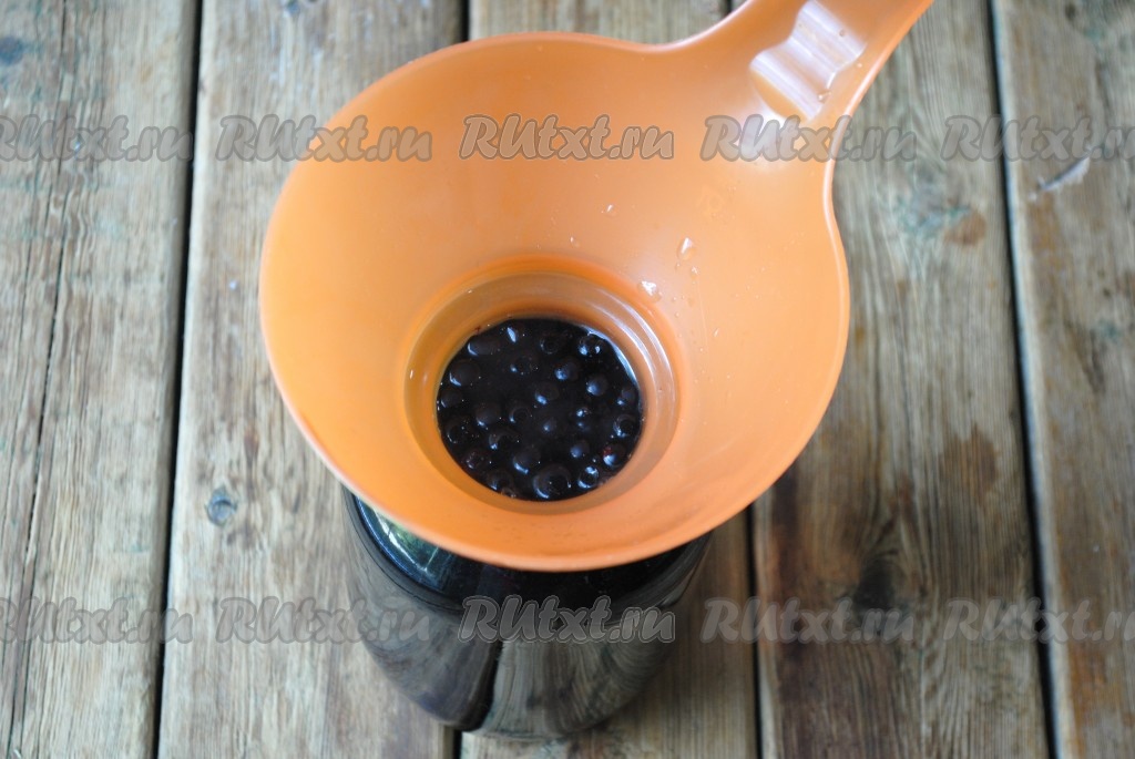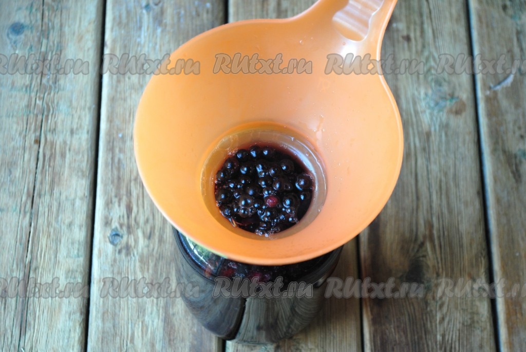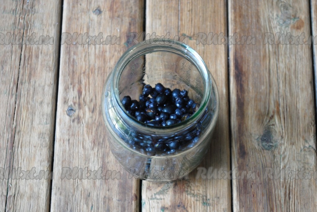 Банку можно простерилизовать любым удобным для вас способом. Я выдерживаю банку над паром 5-7 минут, а крышку кипячу 5 минут в воде. В стерильную банку выложить чернику и чёрную смородину.