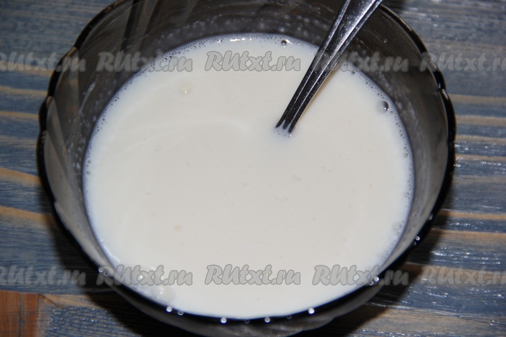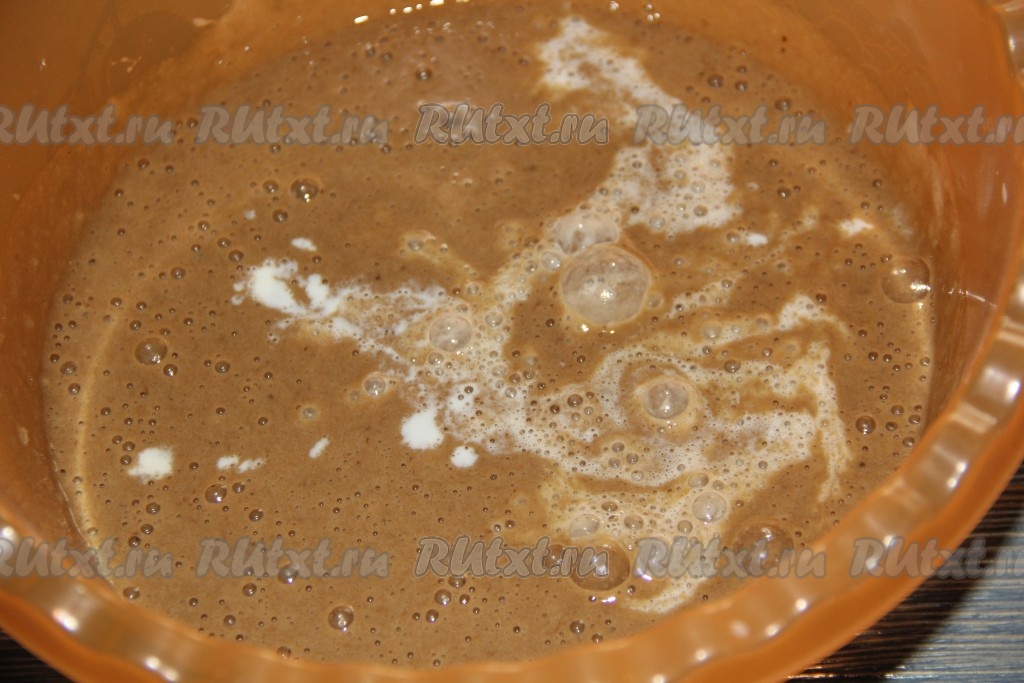 Взбивать массу миксером в течение 5 минут. Масса покроется мелкими пузырьками.