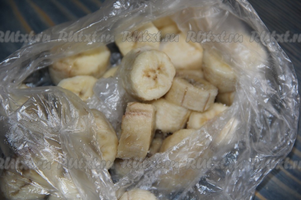 Бананы предварительно очистить, нарезать на кусочки и, поместив в пакет, убрать в морозильную камеру на 1 час.