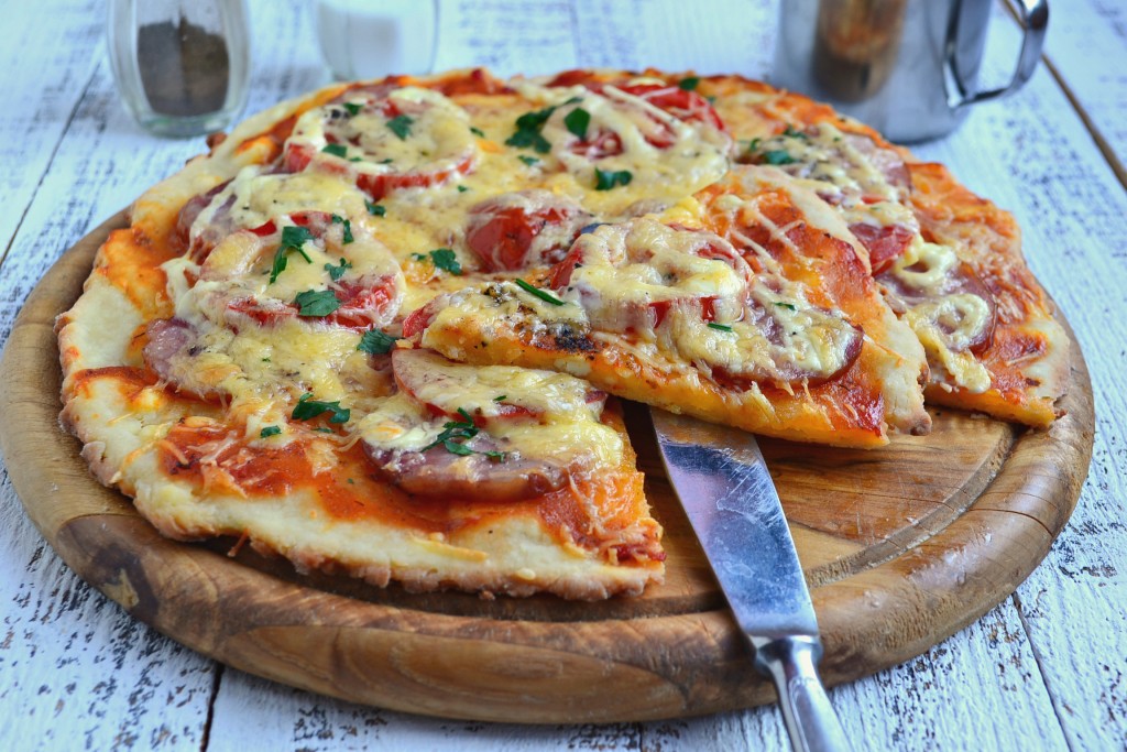 Если вы решили приготовить пиццу, предлагаю её основу сделать из творожного теста. Это тесто простое и очень удачное. Пицца на его основе получается необычайно вкусной. Тесто раскатывается довольно тонко, в готовом виде оно получается нежным и немного слоистым. Из данного количества теста можно испечь две средние пиццы.