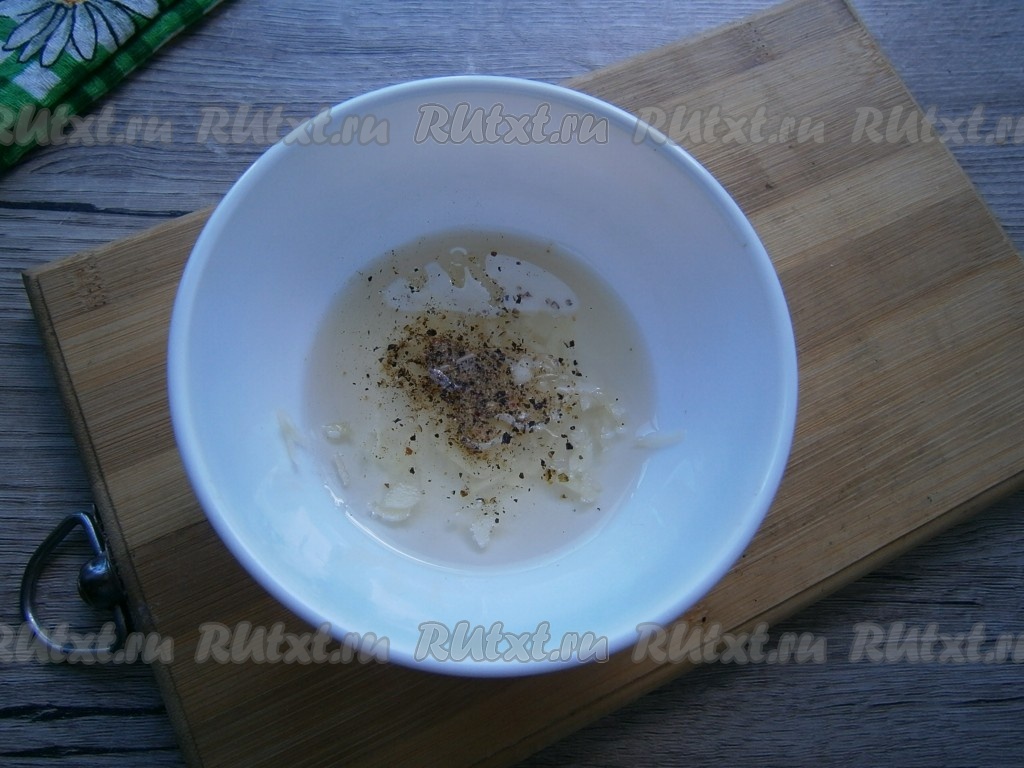 Масло растительное смешать с уксусом и сахаром, затем добавить мелко нарезанный чеснок и черный свежемолотый перец, перемешать получившийся маринад.