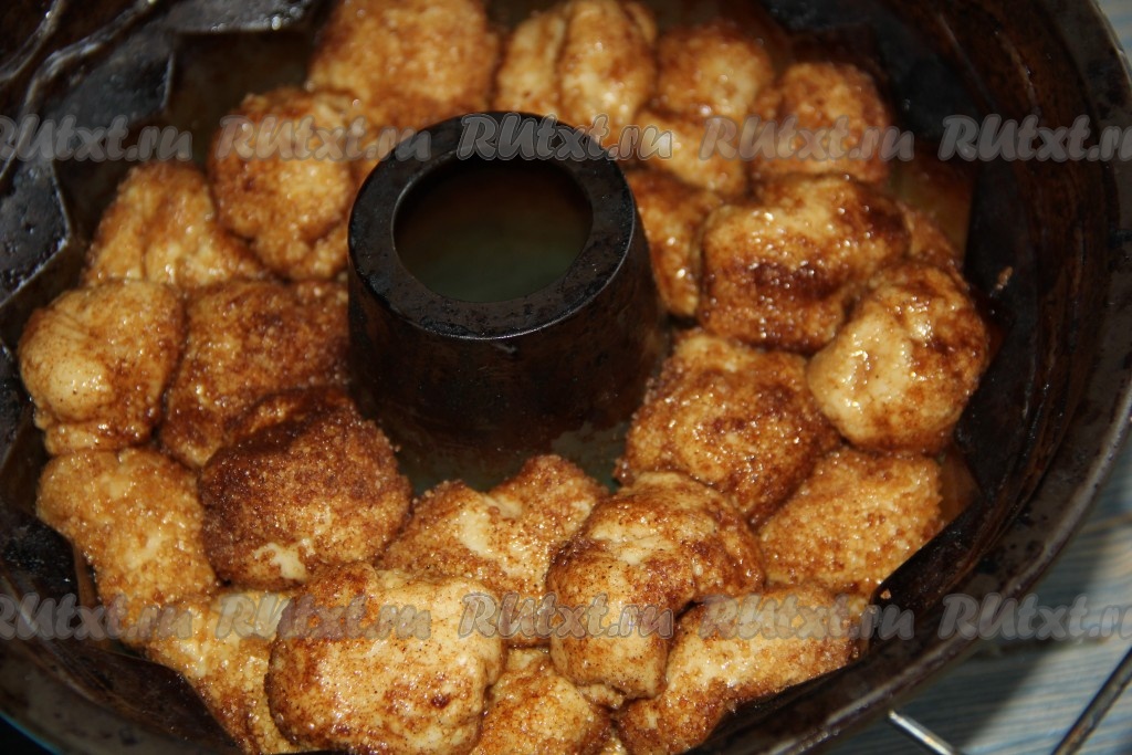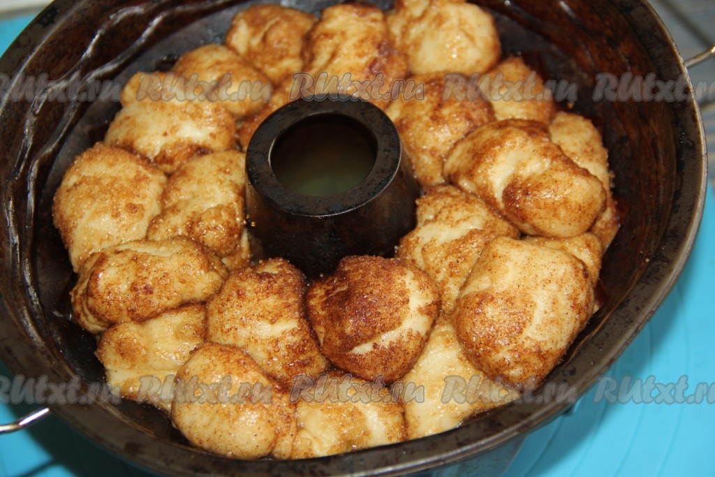 Затем поставить форму в разогретую духовку и выпекать хлеб, примерно, 50 минут при температуре 180-200 градусов. Готовый хлебушек в горячем виде извлечь из формы. Вот такой красивый, ароматный и очень вкусный сладкий обезьяний хлеб с корицей получился. Приготовьте хлебушек по этому рецепту и порадуйте близких пышной, воздушной выпечкой!