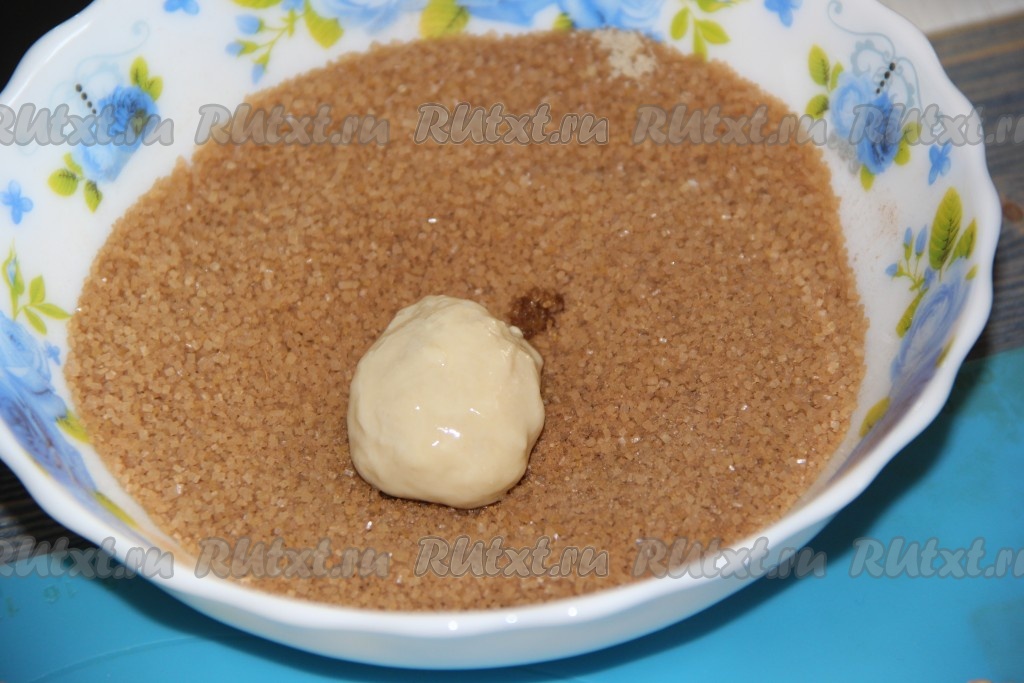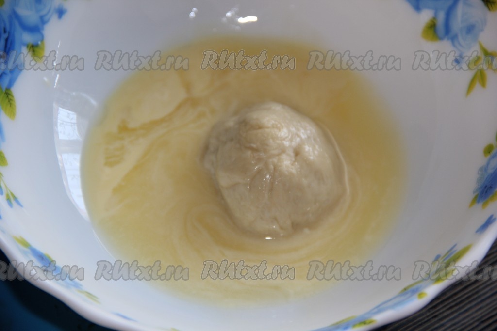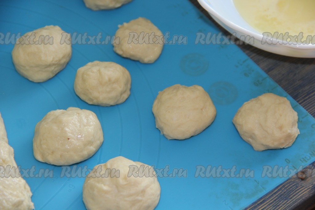 Готовое тесто обмять и разделить на кусочки размером с грецкий орех.