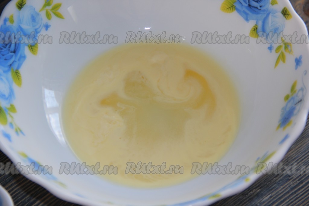 Обмакнуть каждый кусочек теста со всех сторон в растопленное сливочное масло.