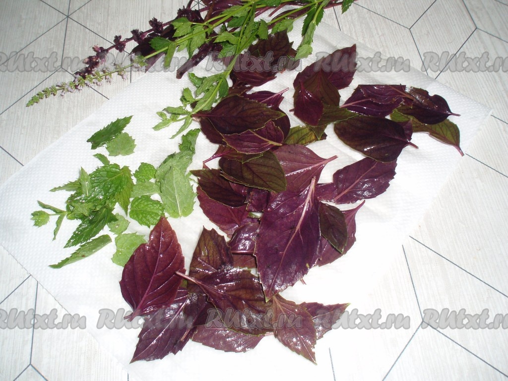 Базилик и мяту вымыть, обсушить на бумажных полотенцах.