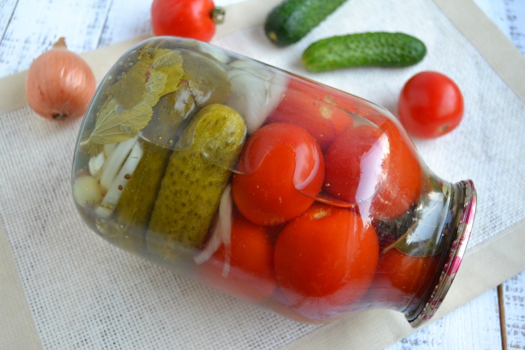 Хранить вкусное ассорти, приготовленное из огурцов и помидоров на зиму, можно в условиях городской квартиры. Очень удачная заготовка, рекомендую!