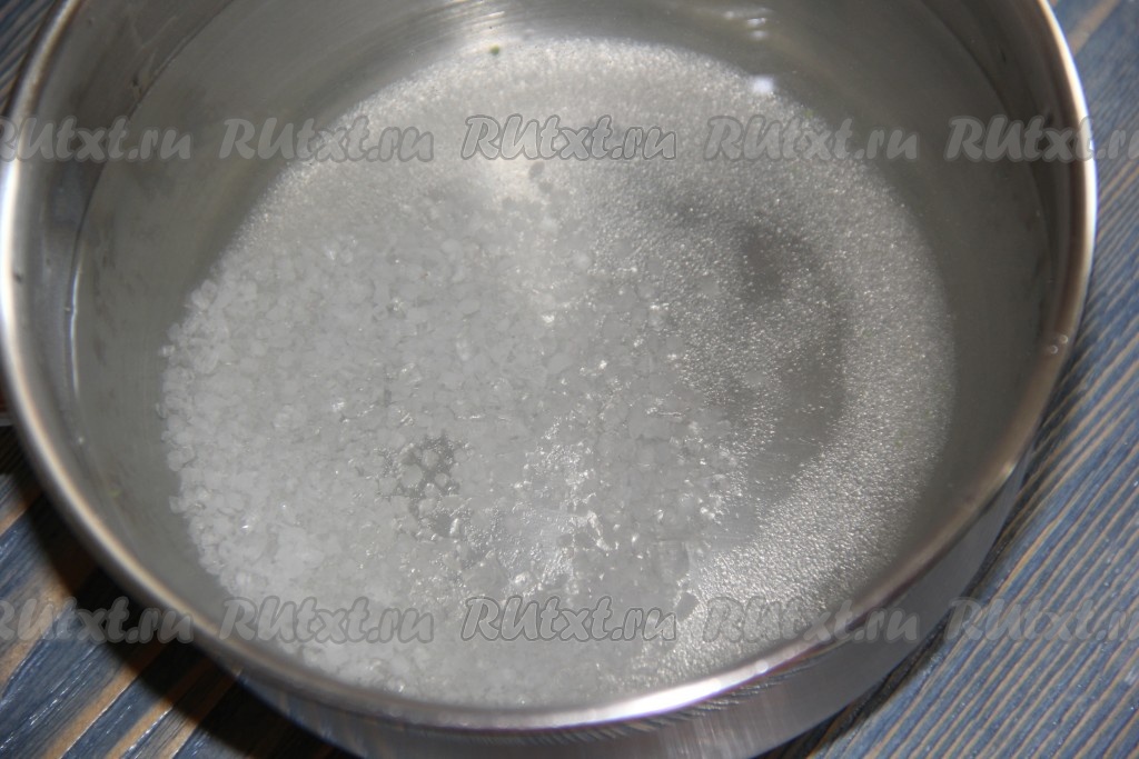Для приготовления маринада влить воду в сотейник, добавить соль и сахар.