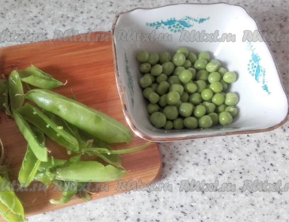 Когда картофель будет почти готов, добавить зеленый горошек.