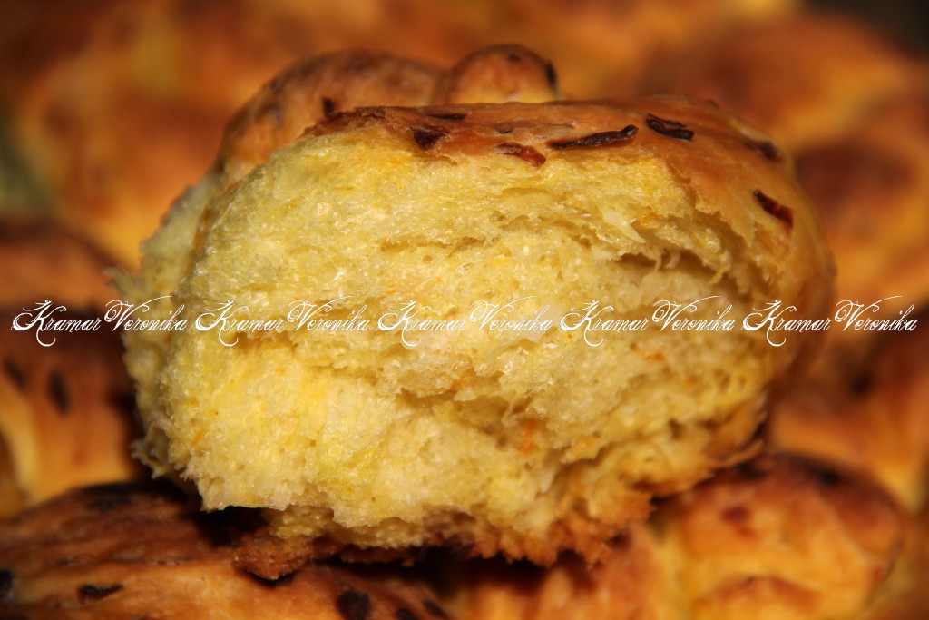 Выпечку слегка остудить и подать к столу. Вот такие аппетитные и пушистые капустные булочки получились.