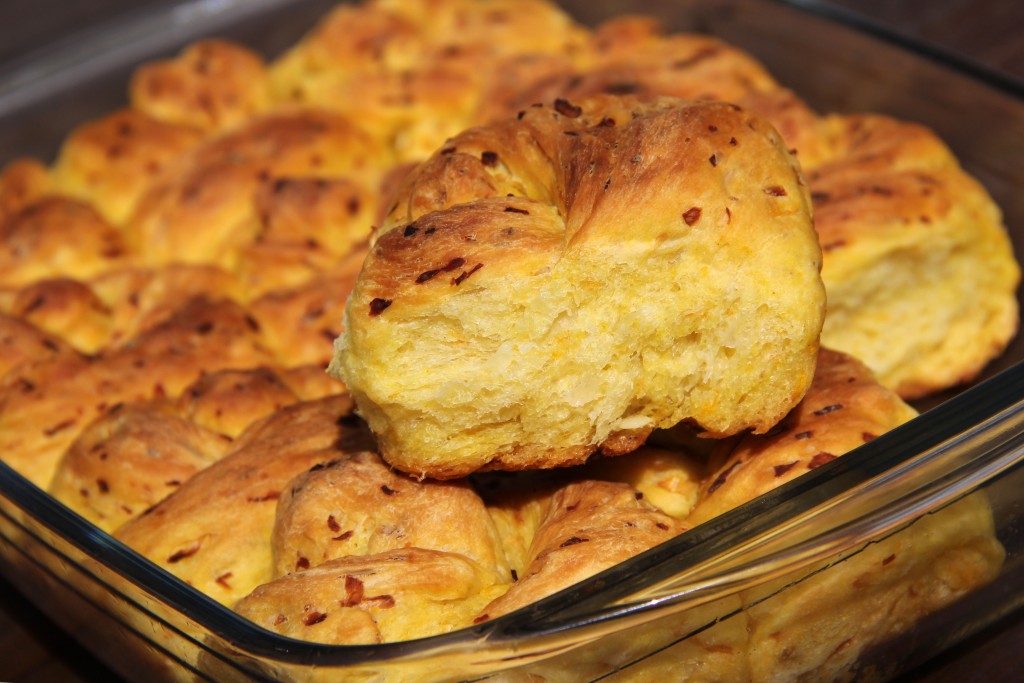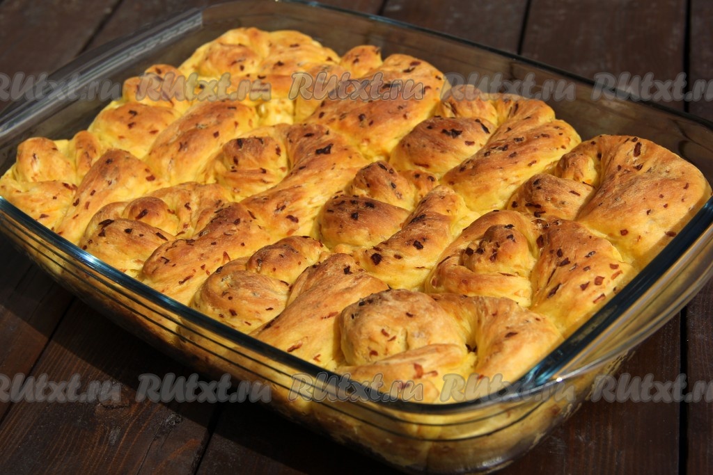 Поставить форму с булочками в разогретую духовку и выпекать, примерно, 35 минут (до золотистого цвета) при температуре 180-200 градусов.