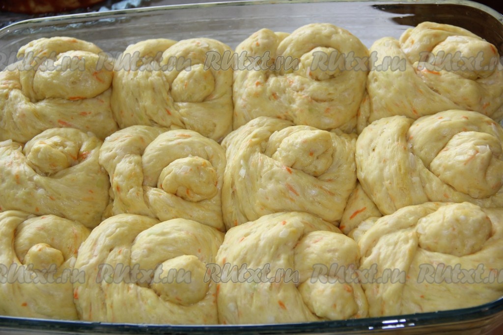 Оставить капустные булочки на 30-40 минут в тёплом месте для расстойки (они увеличатся в объёме).