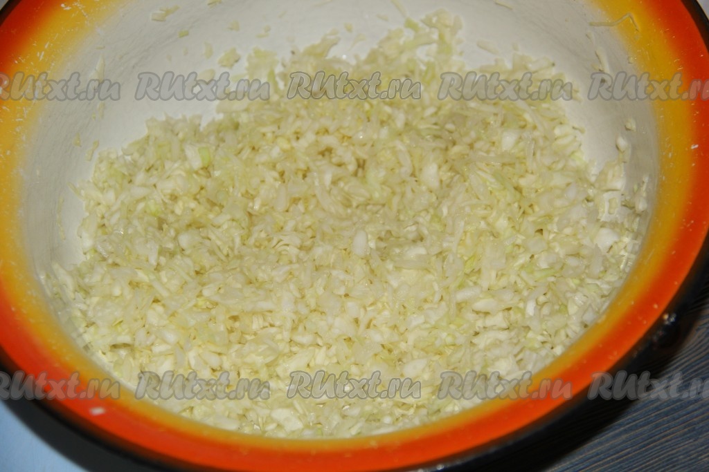 Капусту мелко нарезать. Лучше использовать молодую капусту.