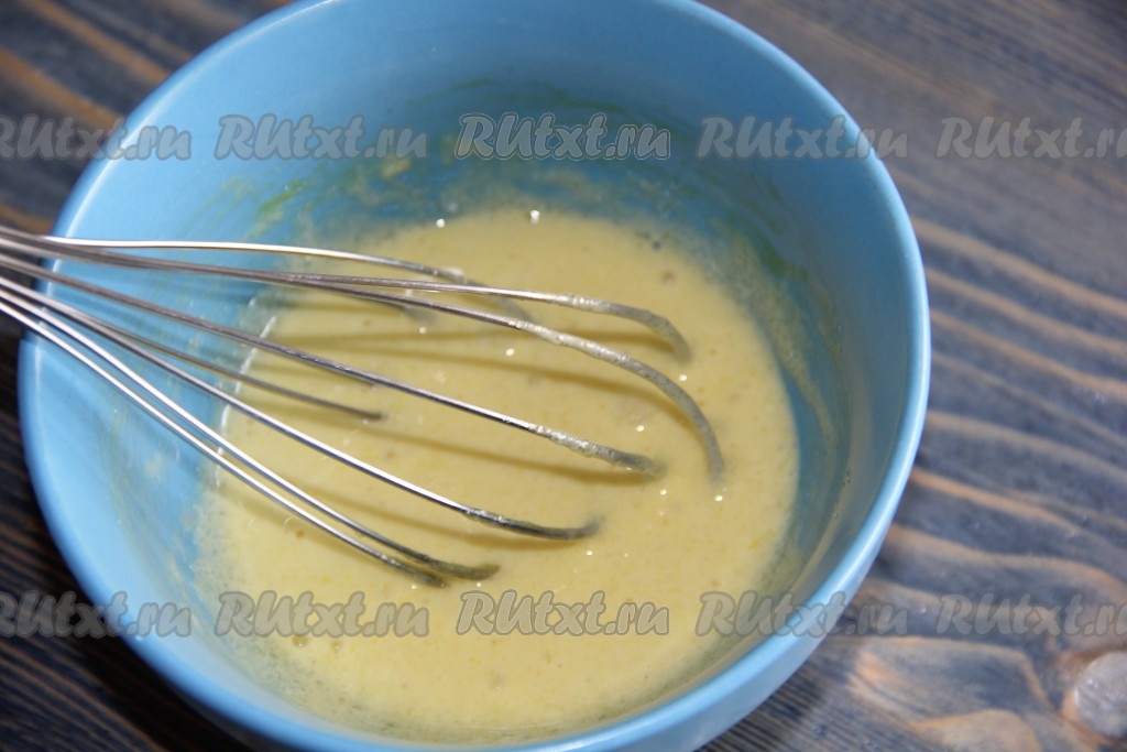 С помощью венчика хорошо перемешать яичный желток с сахаром. Масса побелеет.