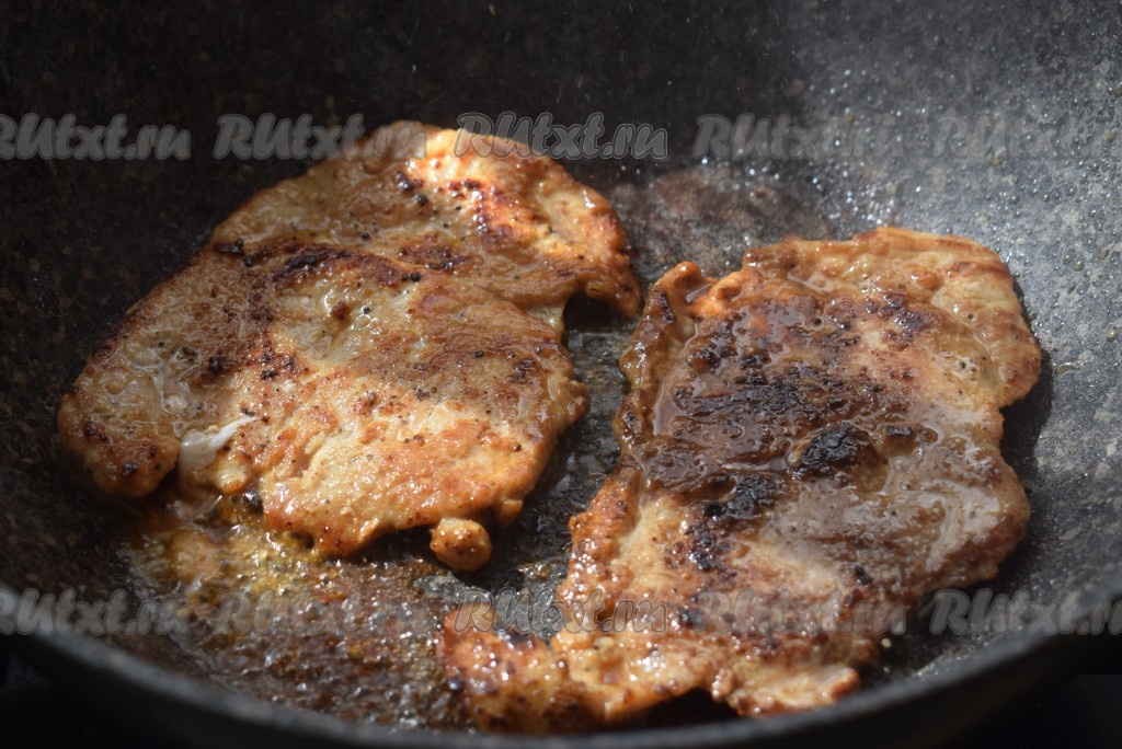 Жарим 7 минут с другой стороны, тоже под крышкой и на сильном огне. Отбивные станут румяными, будут очень вкусно пахнуть и останутся сочными, благодаря сильному огню.