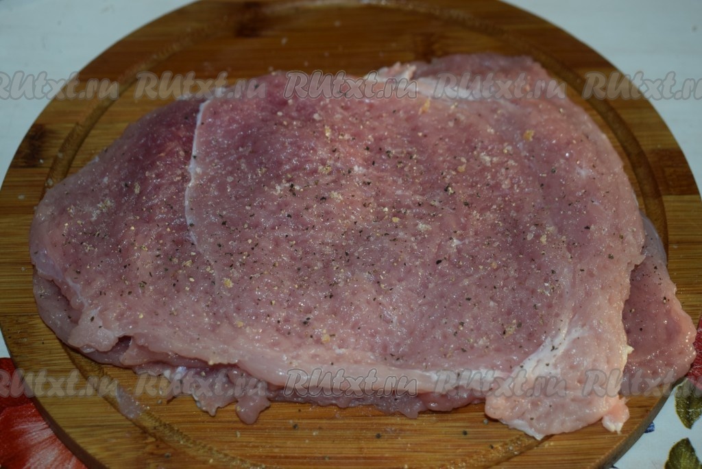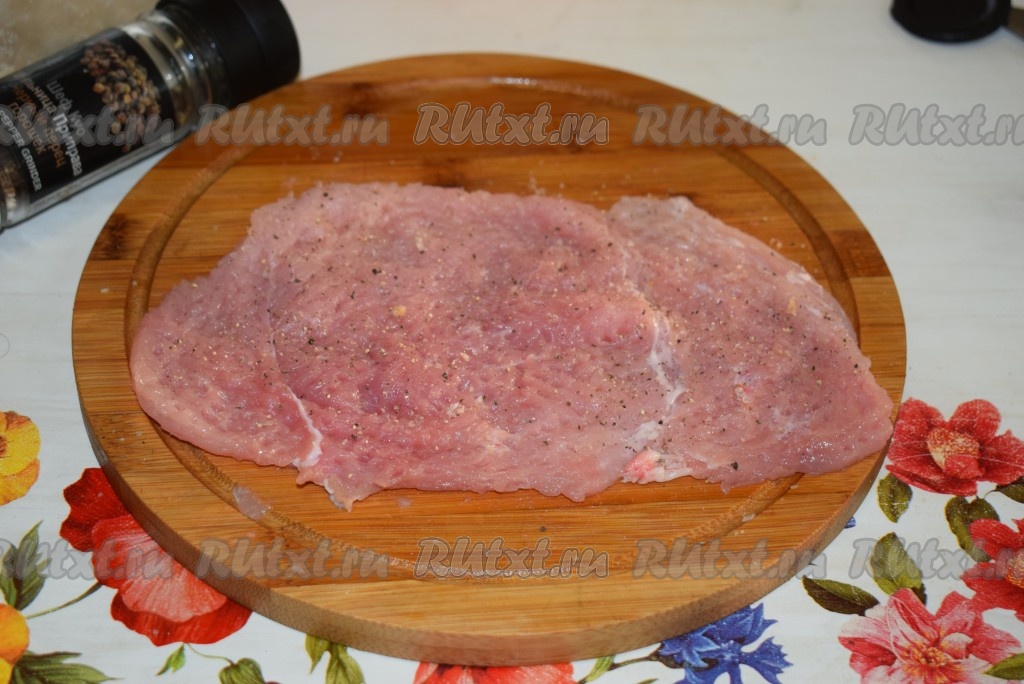 Подготовленное отбитое мясо солим и перчим по вкусу.