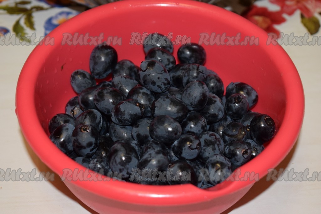 Обрываем виноградины с кисточек и промываем ягоды горячей водой (можно залить виноград на пару минут кипятком, затем воду слить).