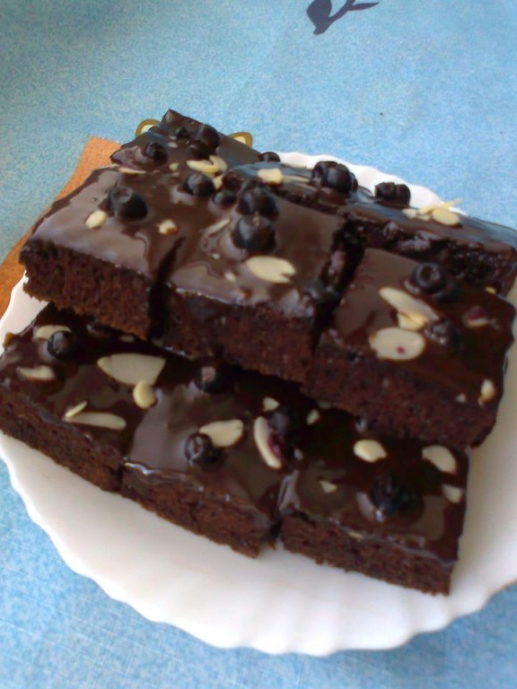 Дать остыть полностью. Можно украсить лепестками миндаля и ягодами черники (или по своему усмотрению).