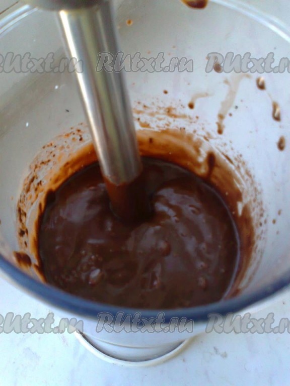 Какао обязательно надо просеять, чтобы не было комочков. Далее надо взбить погружным блендером сахар, какао, крахмал, молоко и растительное масло.