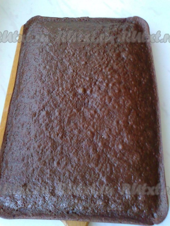 Вынуть форму из духовки, достать бисквит из формы (можно и в форме разрезать, делайте как вам удобнее).