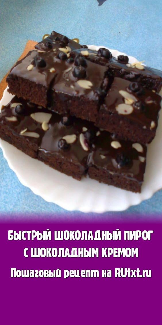 Надеюсь, вам понравится и приятно удивит рецепт быстрого шоколадного пирога с шоколадным кремом.