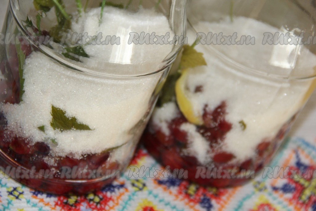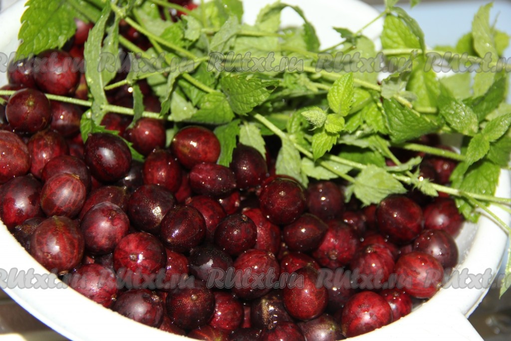 Крыжовник перебрать и промыть под проточной водой. Мы будем использовать целые веточки мяты. Веточки мяты тоже вымыть.