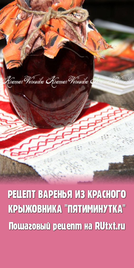 Предлагаю рецепт варенья "Пятиминутка" из красного крыжовника. Варенье готовится три дня, но всего по 5 минут, получается очень вкусным, густым и ароматным. Если честно, оно даже не уступает по вкусу вишнёвому варенью.